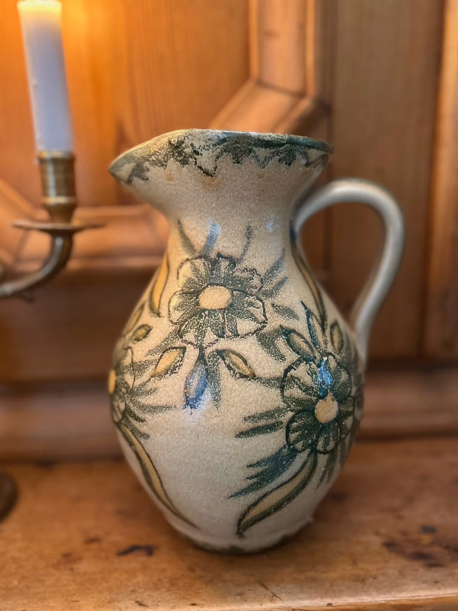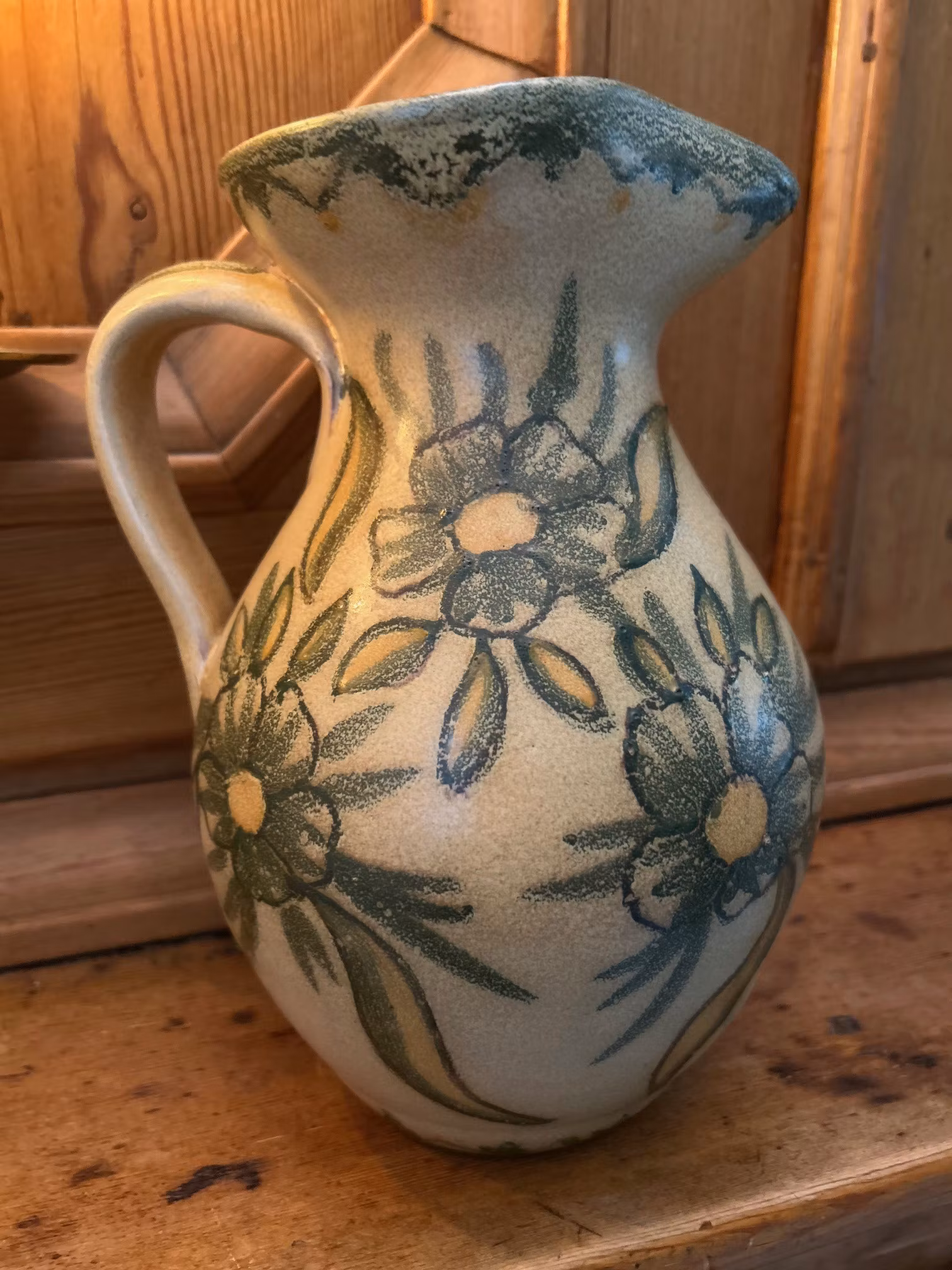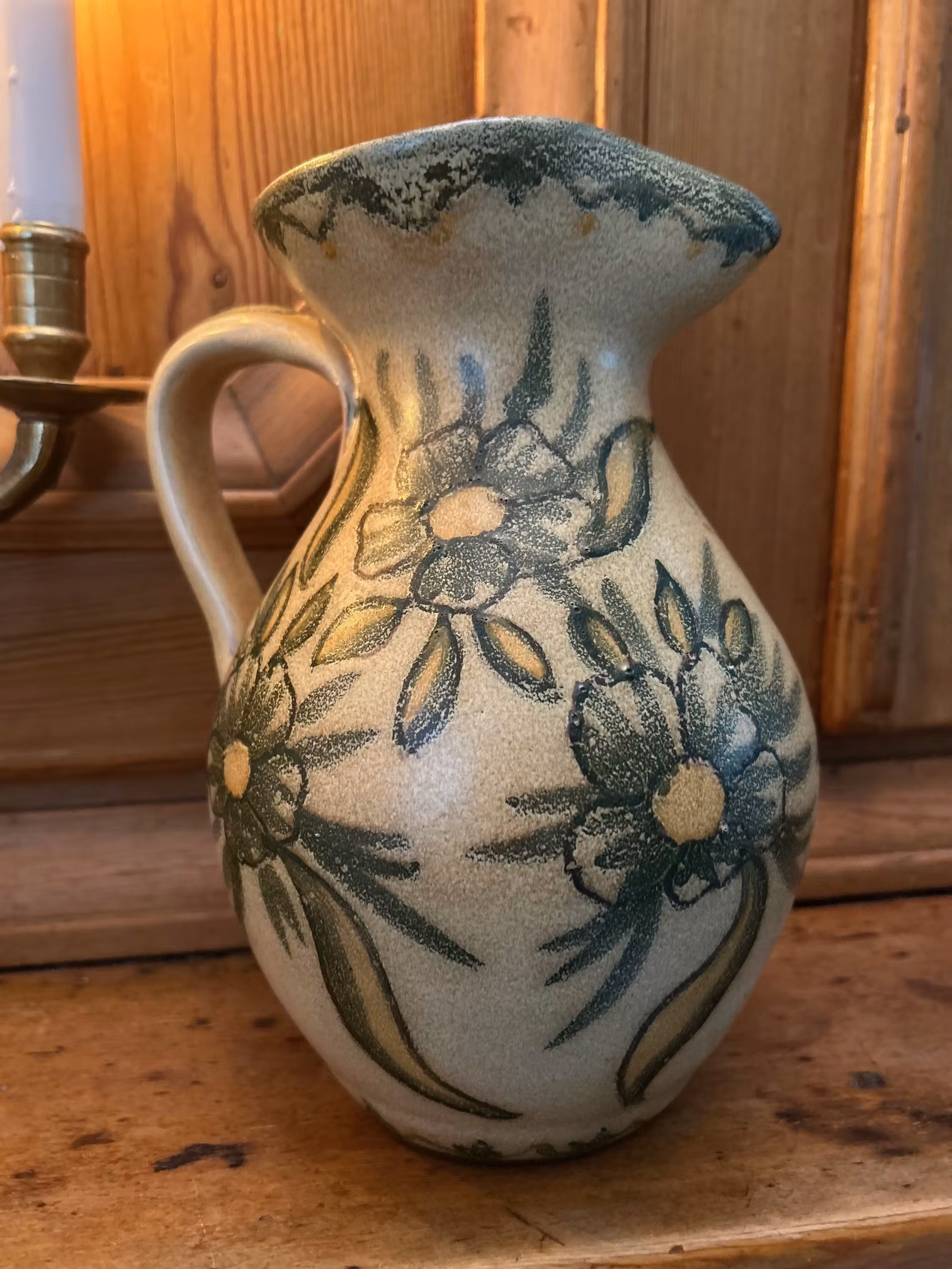 Charmig kanna att använda som vas på grund av invändigt slitage. Några utvändiga fläckar som inte går bort.