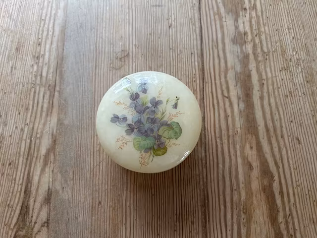 Mått: H: (med lock) ca. 4,5 cm, Ø: ca 7 cm.