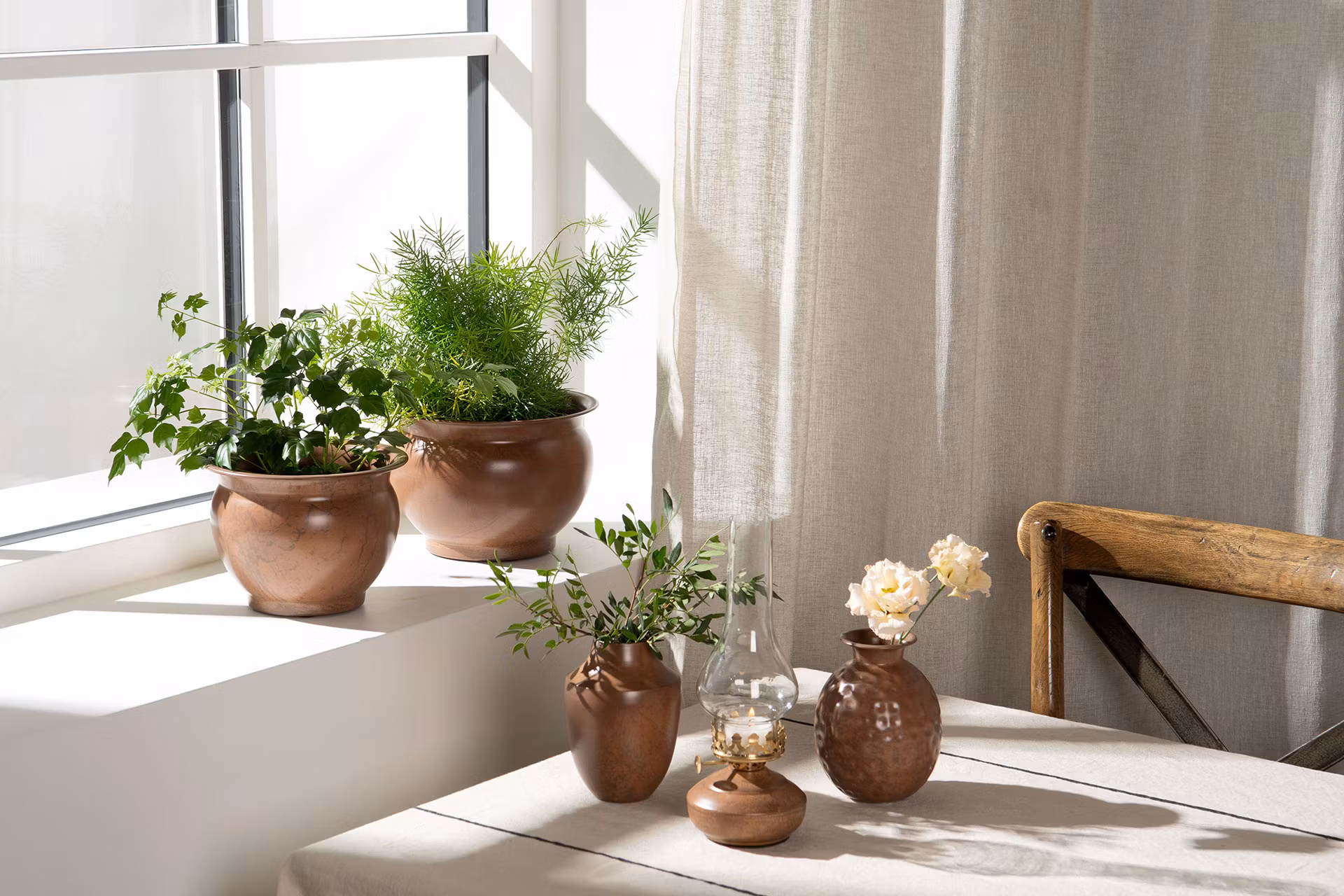 Ljuslykta för värmeljus som ser ut som en gammal fotogenlampa. Tillverkad i glas och metall.