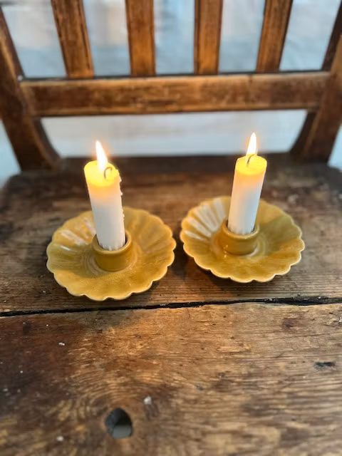 Fin ljusstake, senapsgul. Passar för kronljus.