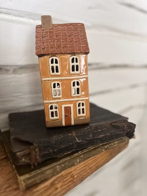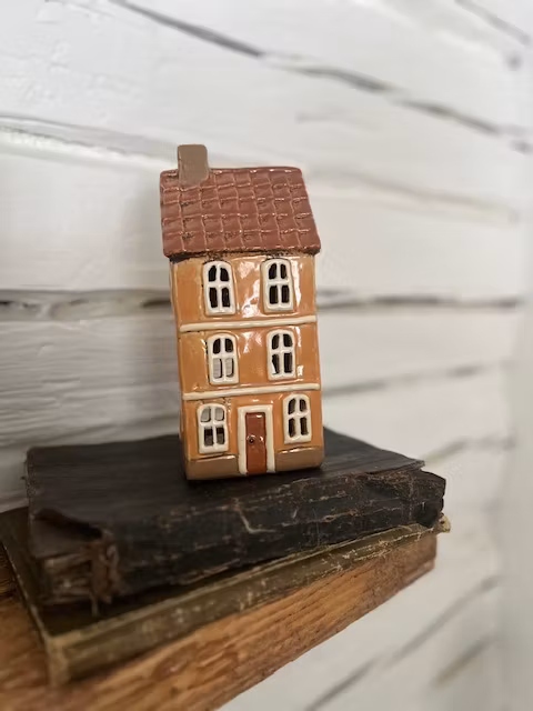 Ljushus i keramik för värmeljus, gult . Det Gamle Apotek.