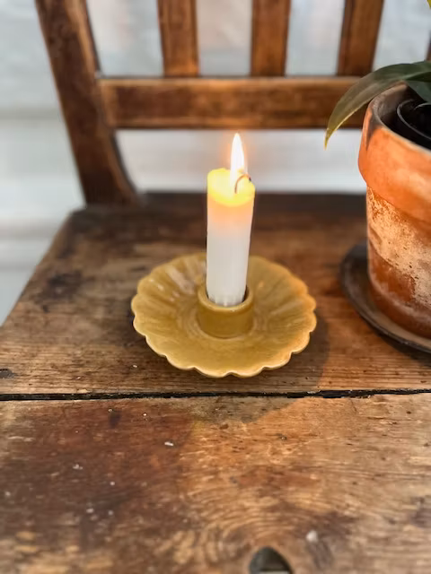 Fin ljusstake, senapsgul. Passar för kronljus.